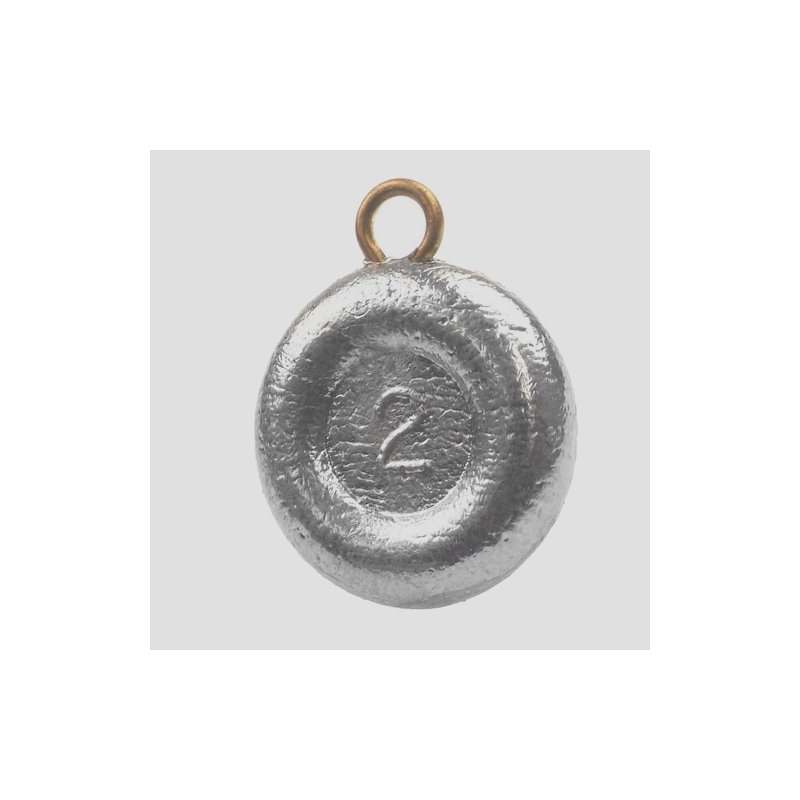 Sauber gegoßenes Tellerblei mit kräftiger Öse.